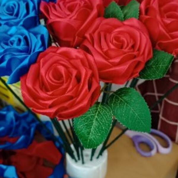 Discover the satin ribbon flower bouquet by Yousha Crafts—an elegant, hand-crafted display perfect for weddings and anniversaries, radiating timeless charm and sophistication.